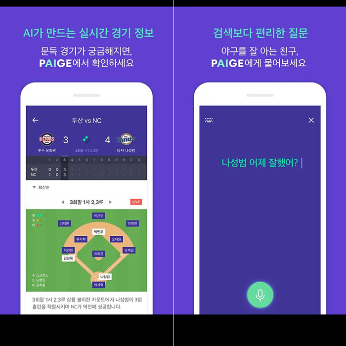 △ 엔씨소프트의 AI 야구 정보 앱 PAIGE = 게임조선 촬영