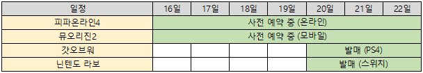 '피파온라인4' '뮤오리진2' 사전 예약을 비롯해 '갓오브워' '닌텐도 라보' 등 게이머들의 기대감을 채워주기 충분한 타이틀이다.