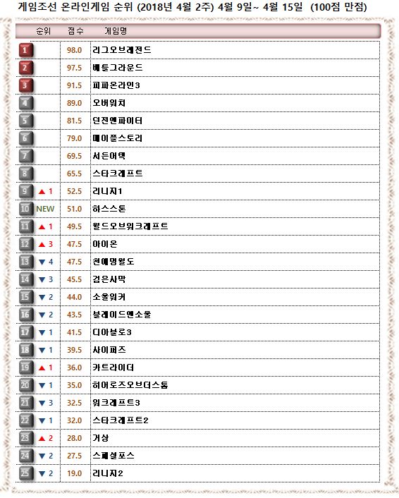 2018년 4월 2주 온라인게임순위=게임조선 제작