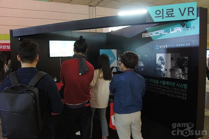 또 의료VR은 실제 수술실을 VR 환경에 재현해 직접 시뮬레이션 할 수 있는 콘텐츠이다. 의료VR을 통해 각종 의료 실습을 진행해 볼 수 있으며, 컨트롤러의 진동으로 실제 수술 도구의 느낌을 전달하는 것이 특징이다.