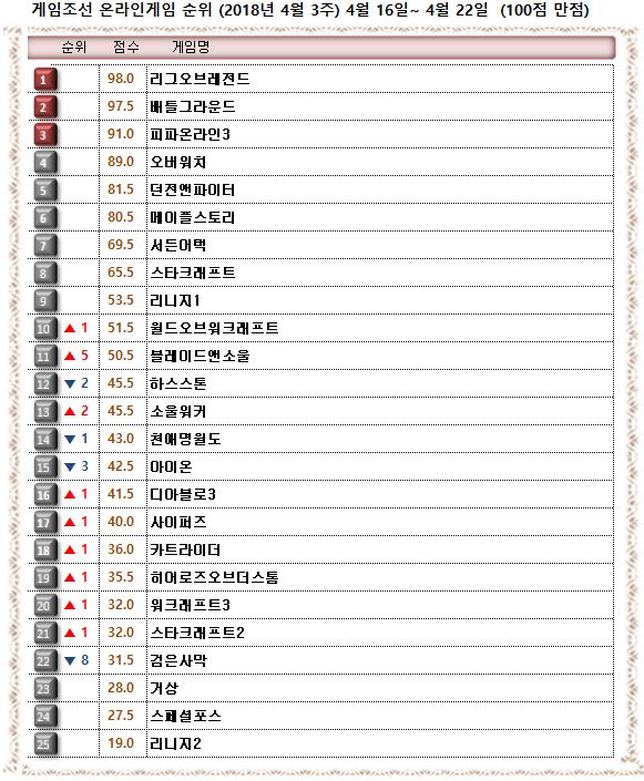 2018년 4월 3주 온라인게임순위=게임조선 제작