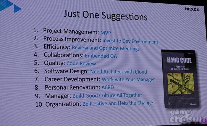 게임 업계를 비롯해 모든 회사에서 프로젝트 관리, 프로세스 개선, 조직 개편은 모두 어려운 주제들이다. 또한 조직원, 관리자, 오너 입장에서 더 나은 자기 개발 및 조직 문화를 만든다는 것은 일을 하면서 영원한 풀어야 할 숙제일지도 모른다.