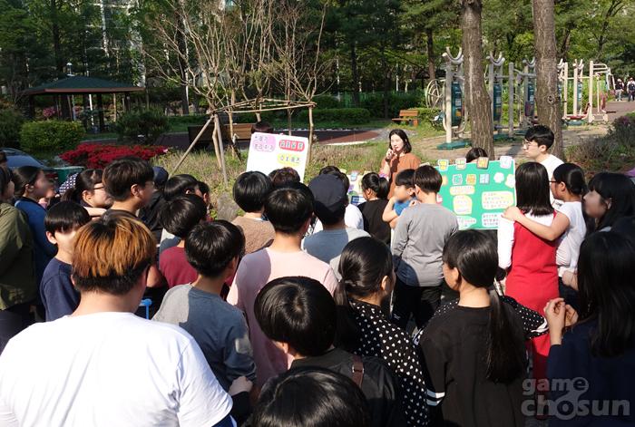 분리수거 및 환경 캠페인 교육 중인 모습 = 게임조선 촬영