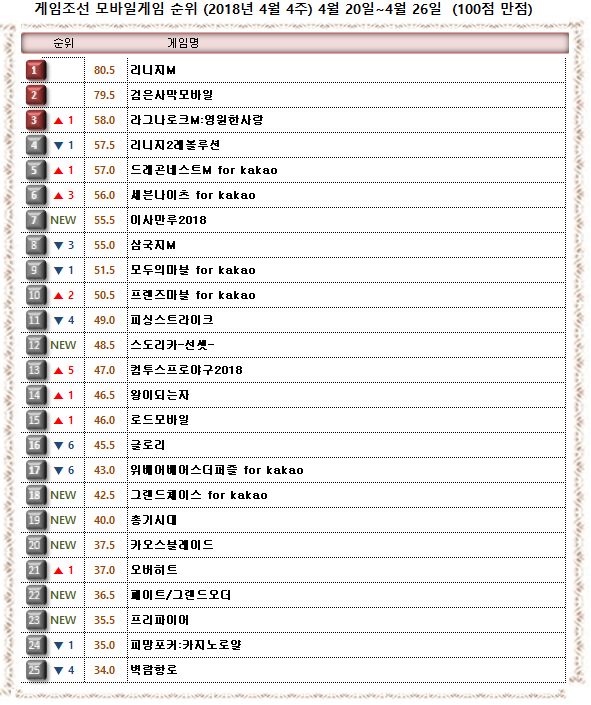 2018년 4월 4주 <게임조선> 모바일게임순위