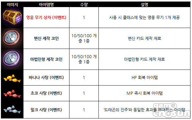 이전의 특수 던전들과 달리 가장 낮은 수준의 획득 아이템이 정해진 콘텐츠에서밖에 얻을 수 없는 변신 제작 코인과 마법 인형 제작 코인 자체으로 구성되어 있어 실제 2시간 플레이 시, 이벤트 상자 획득량은 높지 않을 것으로 예상된다.