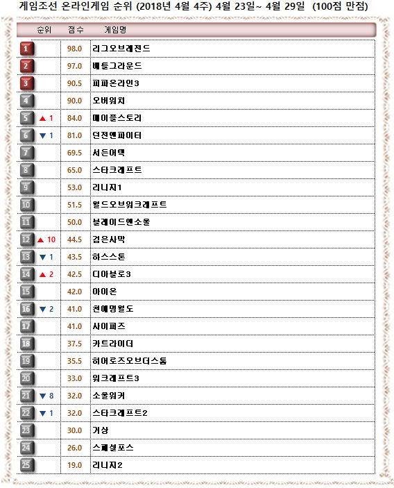 2018년 4월 4주 온라인게임순위=게임조선 제작