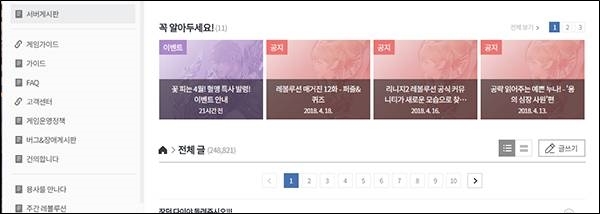 ▲ 깔끔하게 바뀐 리니지2레볼루션 공식 커뮤니티 대문