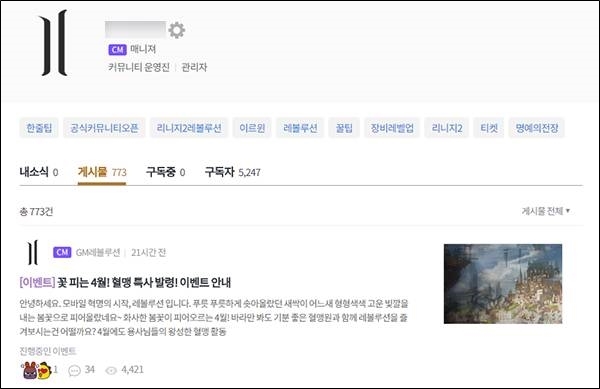 넷마블(대표 권영식, 박성훈)은 모바일 MMORPG(다중접속 역할수행게임) '리니지2레볼루션(이하 레볼루션, 개발사 넷마블네오)의 공식 커뮤니티를 리뉴얼하여 유저들 사이에서 화제가 되고 있다.