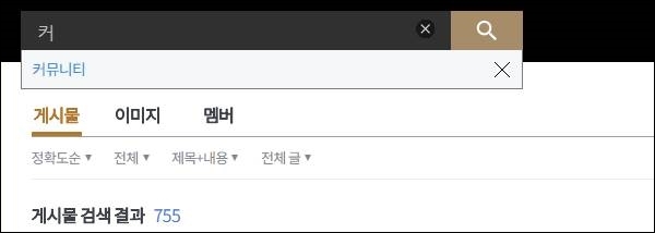 ▲ 추천 검색어가 자동으로 완성되고 게시물 내의 이미지나 댓글도 검색할 수 있다