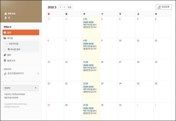 ▲ 혈맹 커뮤니티를 통해 콘텐츠 일정 관리도 할 수 있다.