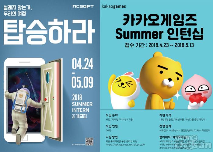엔씨소프트와 카카오게임즈의 인턴십 모집 이미지=엔씨소프트, 카카오게임즈 제공