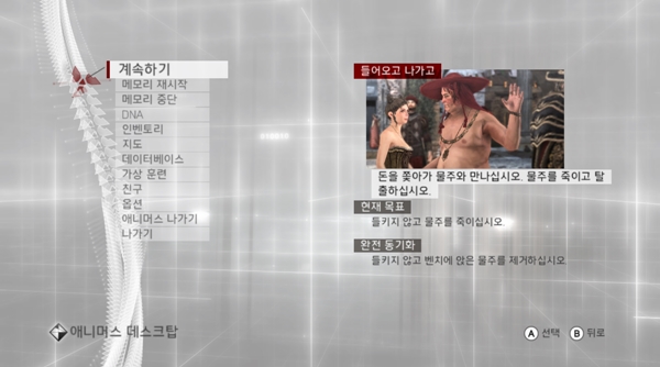 예를 들어 '접근'미션의 완전 동기화 조건은 '벤치에 앉은 물주를 제거하라'인데 이 게임은 시스템 특성상 이벤트가 벌어지지 않는 한 NPC가 벤치에 앉는 일이 없다. 정확한 내용은 '벤치에 앉아 다가오는 물주를 은밀하게 제거하라'이다. 즉 오역된 안내를 참고한다면 1년 12개월을 하염없이 기다려도 완전 동기화 조건을 절대 달성할 수 없다는 것이다.