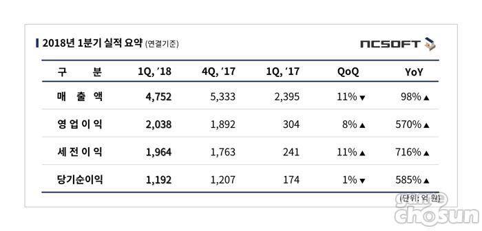 엔씨소프트 2018년 1Q 실적 도표 = 엔씨소프트 제공