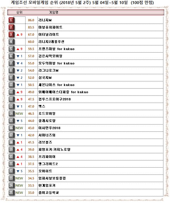 2018년 5월 2주 <게임조선> 모바일게임순위