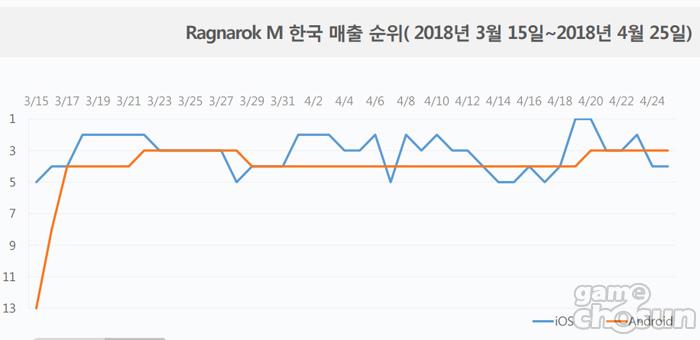 2018년 3월에는 '라그나로크M'의 한국 론칭을 통해 2017년 4분기 매출을 이어 갈 수 있었다. '라그나로크M'은 국내 출시 후 구글플레이 최고 매출 3위, 애플 앱스토어 최고 매출 3위를 기록하며 론칭 후 꾸준히 매출 5위권을 유지하고 있다.