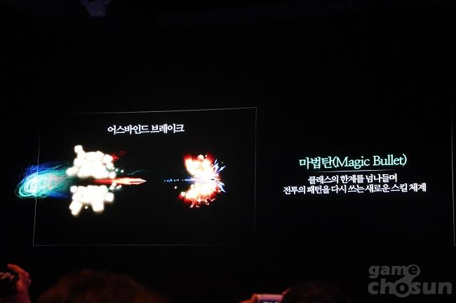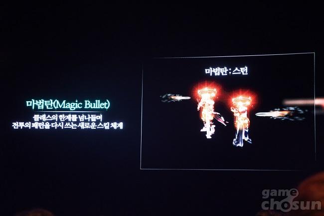 앞서, 상대의 버프를 제거하는 '디버퍼'의 능력도 있다고 했는데, 이것의 핵심이 되는 것이 바로 '마법탄'이다. 마법탄을 통해서 기존에 축적된 전투 노하우인 '이레-캔-스턴-디스'의 스킬 콤보를 타파하고 스킬 체계를 다시 쓸 것이라고 밝혔다. 행사장에서 공개한 자료 화면에서는 마법탄으로 요정 클래스의 기술 '어스바인드'를 무력화시키는 것을 보여줬다.