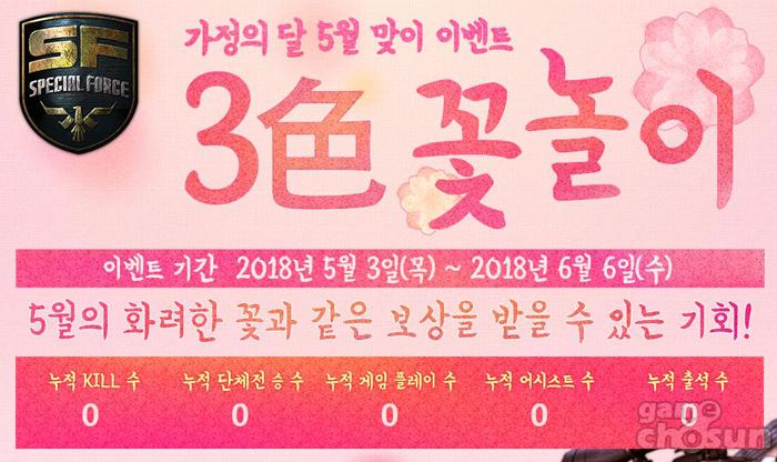‘스페셜포스’는 5월을 맞아 이용자의 게임 플레이에 따라 각종 보상을 제공해는 3색 꽃놀이 이벤트를 진행 중이다. 누적 플레이, 킬 수, 어시스트 중 게임 플레이 지표에 따라 게임에서 사용할 수 있는 총기를 지급받을 수 있다.