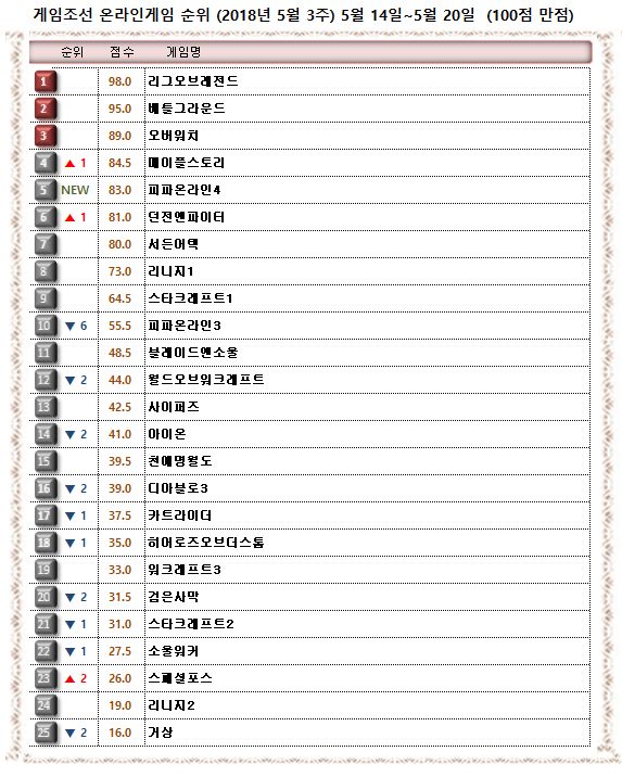 2018년 5월 3주 온라인게임순위 = 게임조선 제작