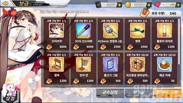 아카시와 궁합이 좋은 특수 설비 3종 = 게임조선 촬영
