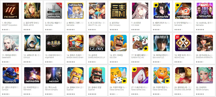 5월 28일 오전 기준 국내 구글 플레이 게임부문 최고 매출 순위로 보는 5월 5주 모바일게임 시장은 5월 4주인 지난 21일 오전 20위에서 30위권에 올랐던 게임들의 순위 상승이 두드러졌다.