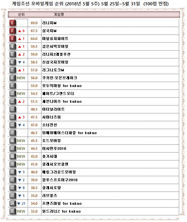 2018년 5월 5주 <게임조선> 모바일게임순위