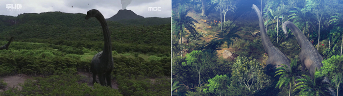 뿐만 아니라, 1회 마지막에는 거대한 공룡이 등장하는 장면을 연출하면서 ‘야생의 땅: 듀랑고’의 공룡 세계를 그려냈다.