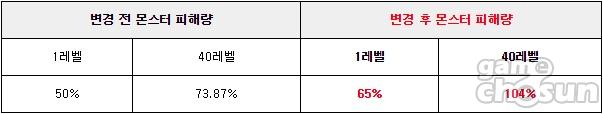레인저에 대한 밸런스 조정도 이뤄졌다. '수호의 검' 기술의 경우 몬스터 피해량이 증가하고 PVP 피해량에 대한 설명을 추가했다. PVP 피해량은 이전과 동일하며 변경된 피해량은 다음과 같다.