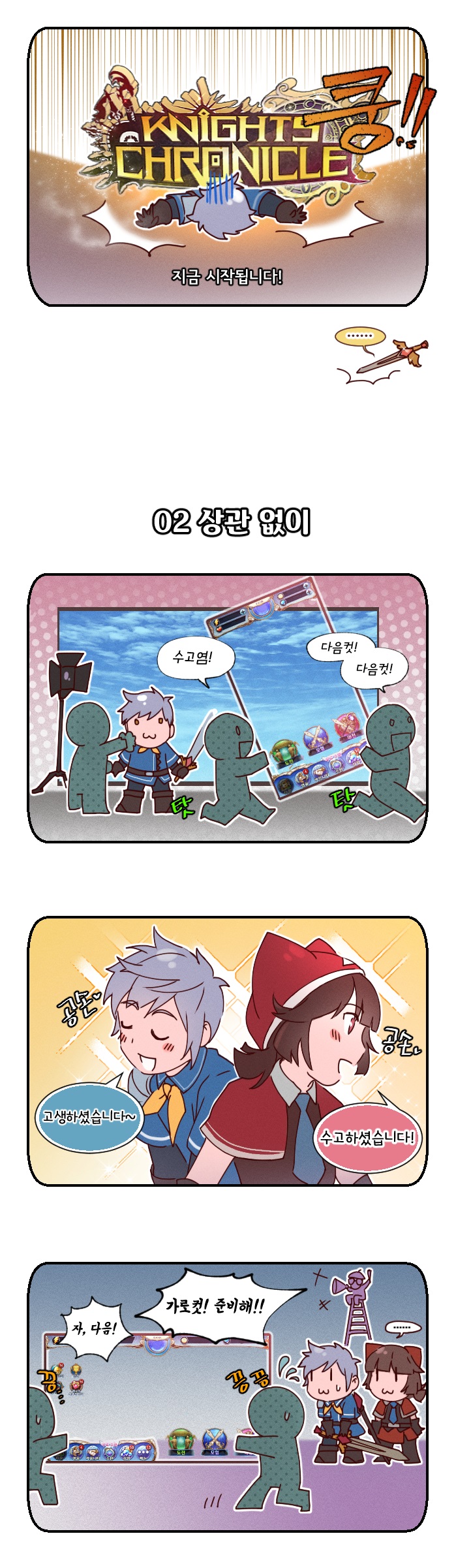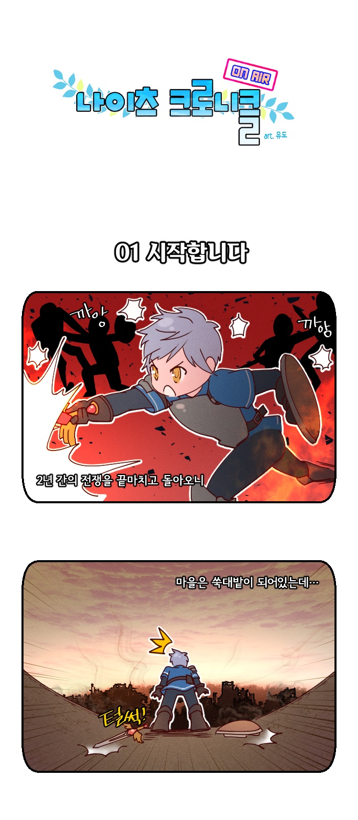 특히 웹툰 작가 '유도(필명)'가 공식 웹툰 연재에 참여해, 작품명 '나이츠 크로니클 On Air'을 그려내고 있다. 웹툰 작가 유도는 아기자기하게 캐릭터를 표현함과 동시에 누구나 공감할 수 있는 게임 내용을 담아내는 것이 특징이다. 이에 게임조선은 웹툰 작가 유도의 나이츠 크로니클 On Air 1편과 2편을 소개한다.