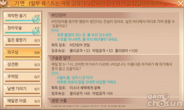 기연 UI 를 통해 진행 가능한 기연 목록을 미리 파악할 수 있다 = 게임조선 촬영