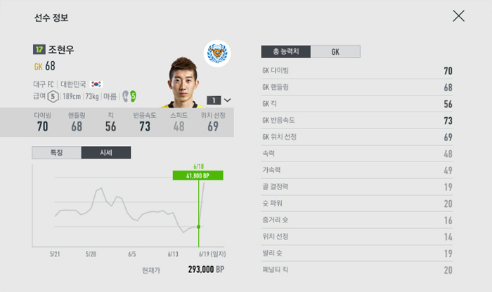 월드컵 직후 조현우 시세 = 게임 스크린샷