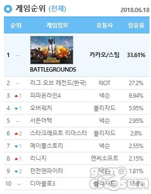 6월 19일 PC방 점유율 = 더로그 갈무리