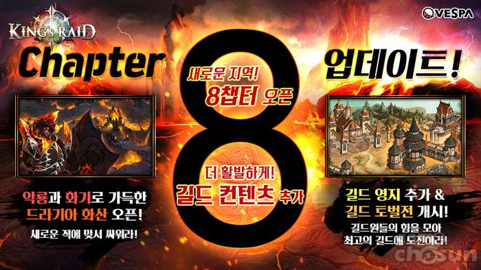 킹스레이드에서는 애정폭8 업데이트 사전예약을 2일 실시하고 15일 업데이트를 단행했다. 업데이트 사전 예약은 3000만 골드와 500루비, 특별 아이템 10회 소환권을 지급했고 사전 예약자는 이를 2배로 제공했다.