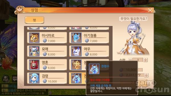 상점에서 만나볼 수 있는 다양한 종류의 펫 = 게임조선 촬영