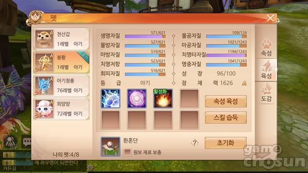 환혼단을 통해 펫의 잠재력과 자질을 자신에게 맞는 스타일로 설정할 수 있다 = 게임조선 촬영