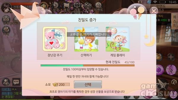 귀속원보와 은화를 사용하여 아이의 친밀도를 올리자 = 게임조선 촬영