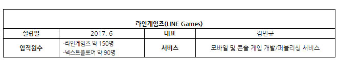 김민규 라인게임즈 대표는 “합병을 통해 급변하는 국내외 게임시장 환경에 기민하게 대응하고 보다 나은 사업 경쟁력을 구축하기 위한 결정”이라며 합병 배경을 설명했다.