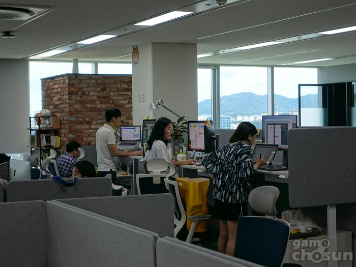 사무실에는 모션데스크가 제공돼 서서 일하는 디자이너가 많았다 = 게임조선 촬영