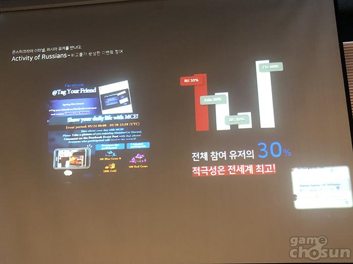 김지영 앤유 매니저는 “’몬스터크라이이터널’은 북유럽풍 실사 일러스트를 바탕으로 승리를 위해 각종 덱을 작성하고 실시간 전투를 즐길 수 있는 게임이다. 게임의 사례를 통해 러시아 시장의 성향을 대변하고 진출을 희망하는 개발사들을 위해 공유하겠다.”라고 전했다.