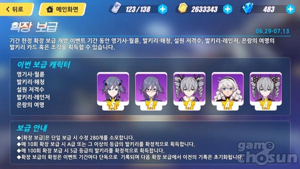 기간 한정 이벤트인 확장 보급을 통해 얻을 수 있는 발키리 일람 = 게임조선 촬영