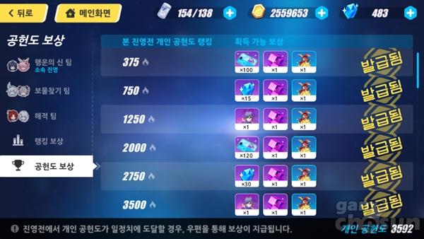 공헌도 보상 외에도 팀 단위 보상이 있으니 팀 선택은 신중하게! = 게임조선 촬영