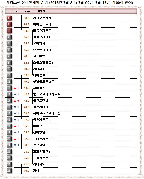 2018년 7월 2주 온라인게임순위 = 게임조선 제작