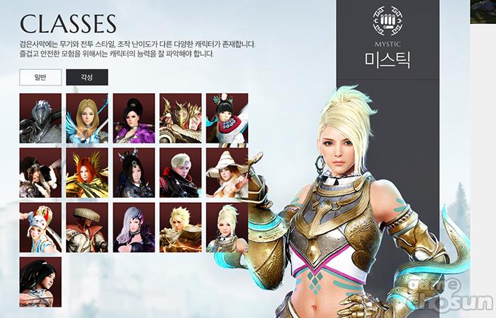 ‘검은사막’은 총 10종의 캐릭터로 서비스를 시작했다. 이후 지속적인 업데이트를 통해 현재까지 총 6종의 신규 캐릭터를 선보여 현재는 총 16종을 플레이할 수 있다. 이들 캐릭터 중 특히 14번째 캐릭터 ‘격투가’는 강인한 외모와 권법에 길거리 싸움 기술을 접목시킨 액션을 선보여 이용자들로부터 호평을 받은 바 있다. 16번째 캐릭터 ‘란’ 역시 유려한 몸동작과 ‘신녀’를 모티브로 제작된 스킬 등으로 이용자들에게 좋은 평가를 받았다.