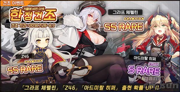 이 중 그라프 체펠린, 아드미랄 히퍼, Z19, Z25, Z35, Z46는 8월 9일 까지 진행되는 한정 건조를 통해 얻을 수 있으며, 나머지 캐릭터 또한 스테이지 진행 등 다양한 방법을 통해 획득할 수 있다.