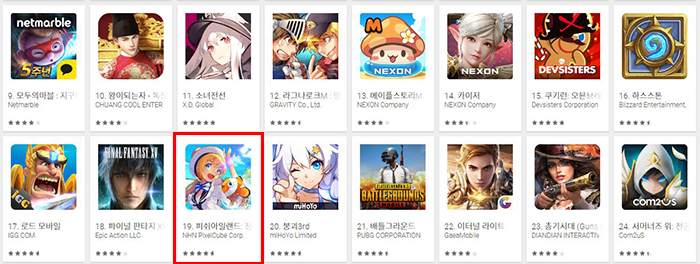 RPG 장르가 상세를 보이는 국내 모바일게임 시장에서 ‘피쉬아일랜드:정령의항로’는 지난 30일 구글 최고 매출 순위 24위에 이어 10위권에 안착해 상승세를 보이고 있으며, 인기 게임 순위도 4위를 유지해 틈새 시장 공략에 성공했다.