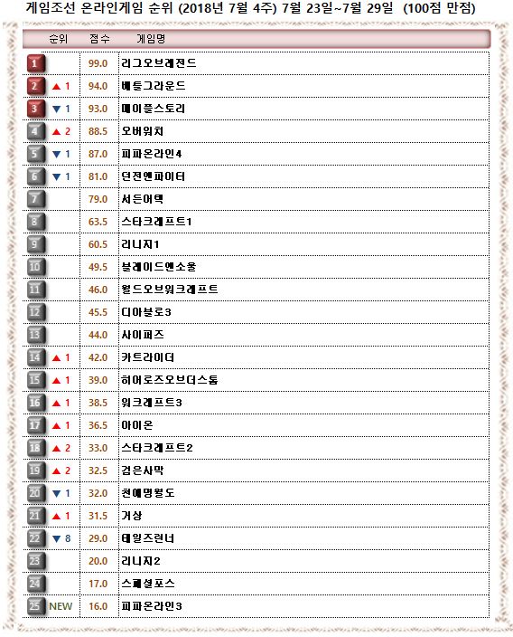 2018년 7월 4주 온라인게임순위 = 게임조선 제작