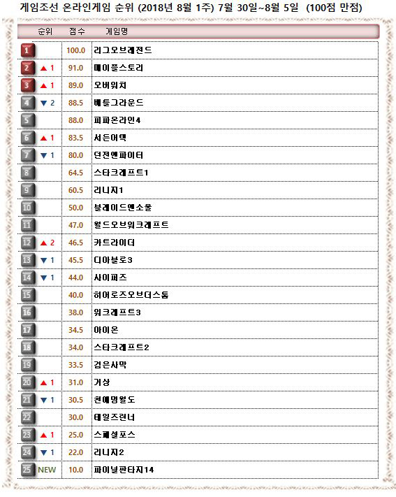 2018년 8월 1주 온라인게임순위 = 게임조선 제작