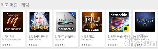 모두의마블은 9일 기준 구글플레이 게임 부문 최고매출 5위에 올랐으며 탑40위까지 캐주얼게임은 모두의마블이 유일하다.