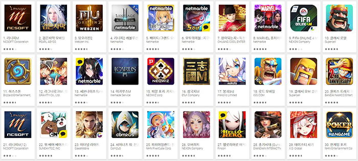 신작 게임의 순위권 진입도 이뤄졌다. ‘헬로히어로’ 시리즈의 신작 ‘헬로히어로:에픽배틀’이 27위를 기록해 구글플레이 최고 매출 순위 순위권에 올랐다. 이 밖에 ‘피쉬아일랜드:정령의항로’, ‘테이스티사가’가 20위권을 지키고 있다.