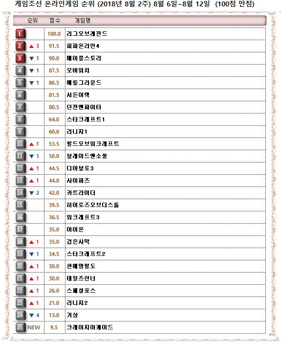 2018년 8월 2주 온라인게임순위 = 게임조선 제작