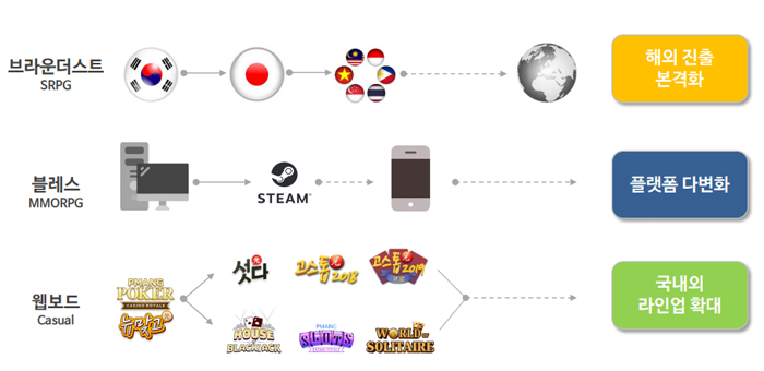 웹보드 장르에서는 PC와 모바일 이용자 통합 작업 등 게임 라인업 확대와 편의성 개선을 통해 경쟁력을 높이고 있다. 이와 함께 카드 게임도 적극적으로 개발, 출시하며 서비스 자산을 확보해 나가고 있다.